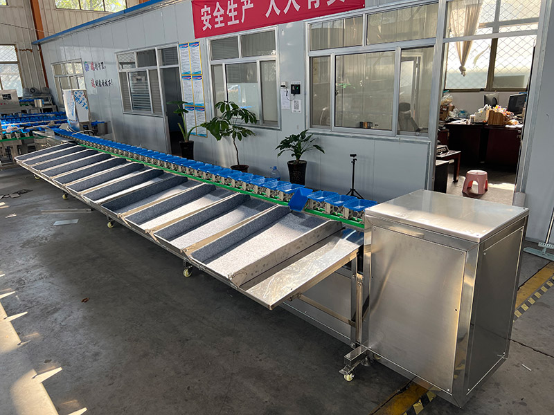 料盒單軌重量分選:適用于各種進行重量分選的果蔬,其中異形果等都是可以的,可根據客戶需求做單軌雙軌重量分選,可分選4-8個等級。